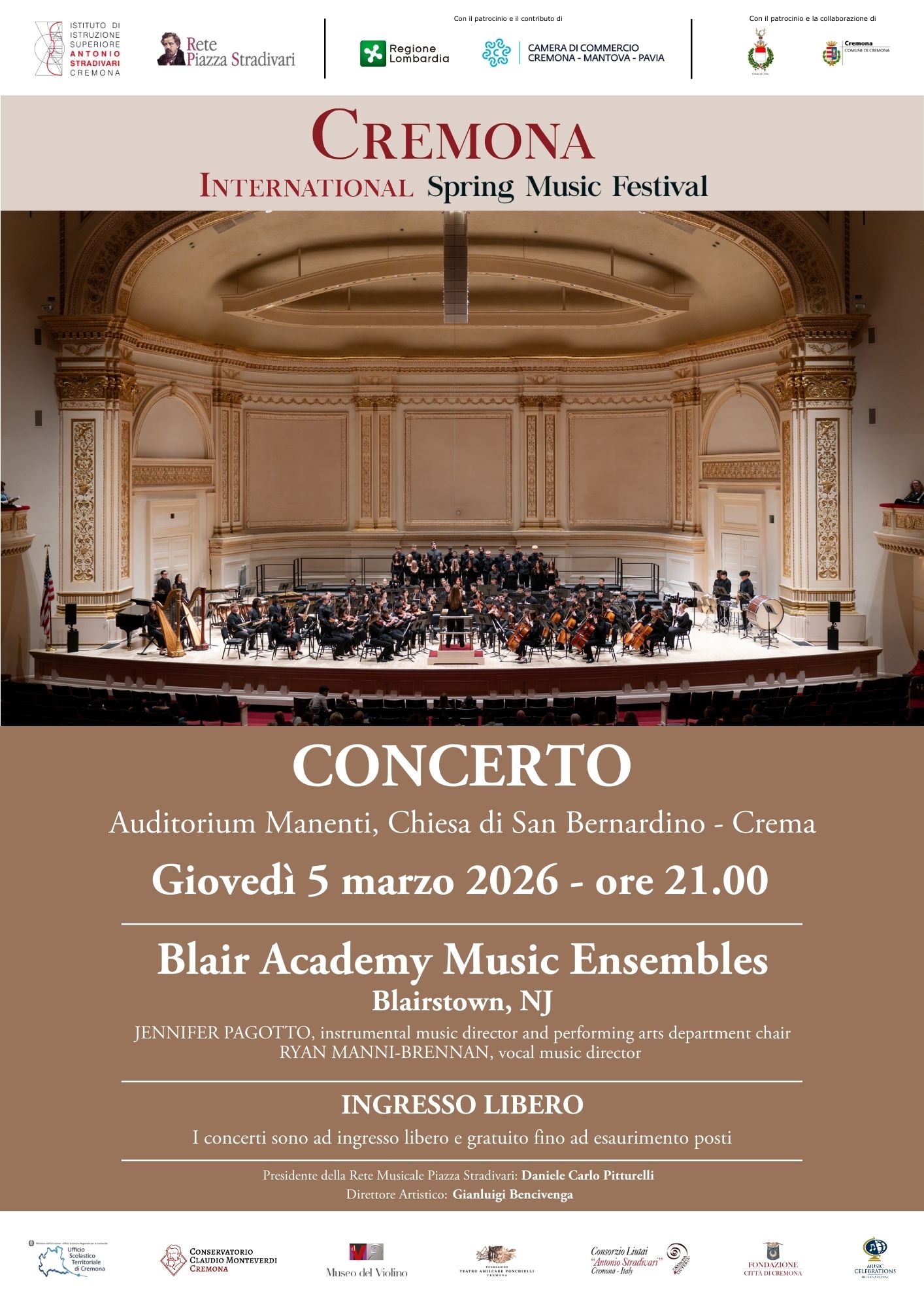 Il concerto del 5 marzo aprirà una serie di anteprime del festival e avrà immediato seguito nel successivo appuntamento del 13 marzo 2026 con la St. Stephen’s Global Orchestra sempre presso l’Auditorium Manenti di Crema