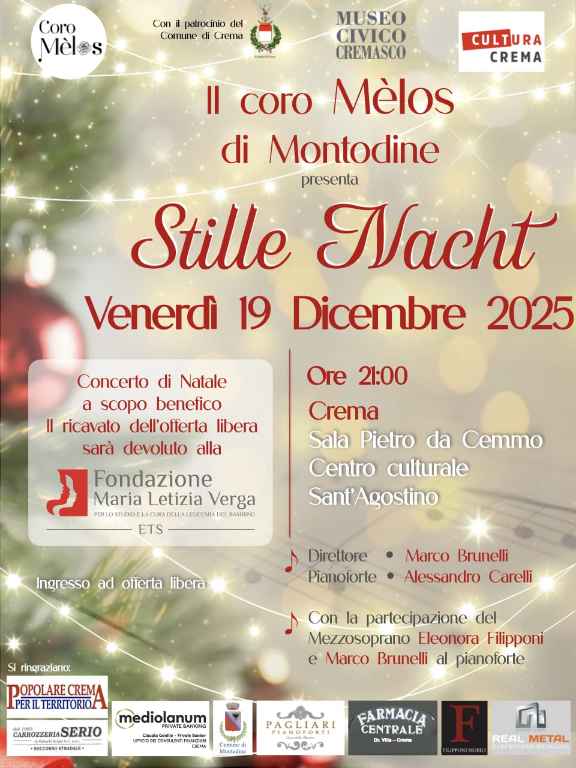 Il ricavato dell’offerta libera sarà devoluto alla Fondazione Maria Letizia Verga