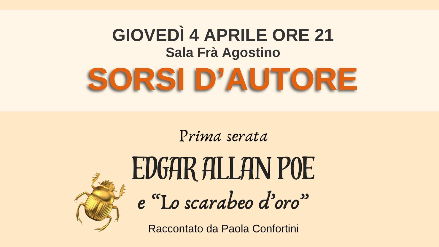 Ogni evento sarà dedicato ad un autore della storia della letteratura e sarà guidato dalla professoressa Paola Confortini. Il protagonista della prima serata sarà Edgar Allan Poe, approfondito con la lettura e il commento del brano “Lo scarabeo d’oro”.