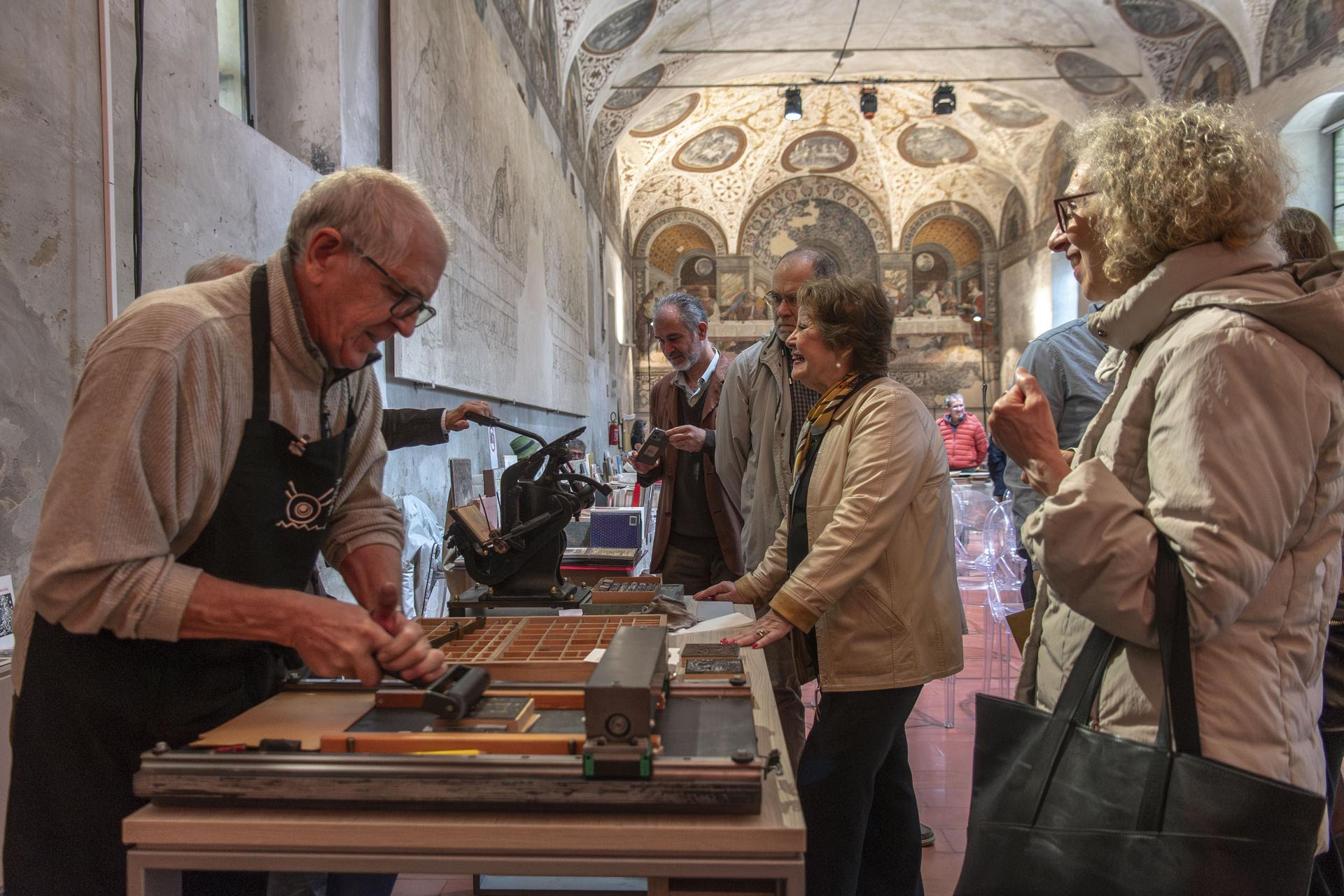 Ad accompagnare la mostra mercato, aperta dalle 10 alle 19, alcuni eventi speciali sui temi della xilografia, della stampa, della tipografia e del libro d’artista. All’apertura del Salone sabato 18 ottobre alle 11.30 saranno presentate nelle Sale Agello del Museo le due mostre Di testa e di filo. Giovani xilografi per un linguaggio anti-contemporaneo – con le opere di Giulia Aloisi, Marta Alvear Calderon, Diana Blu, Lisa Maria Ciccalé, Luna Hoei Cirri, Allegra Donati, Leonardo Fabretti, Valentina Formisano, Iacob Francois Gabriel, Aurora Guazzaroni, Marianna Guerra, Jacopo Pannocchia, Salvatore Ramaglia, Sabrina Spreafico – a cura di Edoardo Fontana, e Omaggio a Lucio Passerini. Libri, xilografie, manifesti. Per l’occasione sarà esposto anche il libro d’artista Il giardino nascosto di Tiziana Romanin e Maurizio Olivotto. Alle 17.30 si inaugura nella Pinacoteca del Museo Civico di Crema e del Cremasco la mostra Ver Sacrum e la grafica della Secessione viennese con i curatori Giovanni Biancardi, Edoardo Fontana e Silvia Scaravaggi. Domenica 19 ottobre una serie di incontri in Sala Pietro da Cemmo caratterizzano la giornata: alle 10.30 un approfondimento dedicato a Lucio Passerini con Chiara Bottelli, James Clough, Luigi Lanfossi; alle 11.30 Tiziana Romanin racconterà come nasce il suo ultimo libro d’artista Il giardino nascosto. Si riprende nel pomeriggio alle 15.30 con Antonio Castronuovo, scrittore e traduttore, e Francesca Nepori, Direttrice Archivio di Stato e saggista, che presentano i «Quaderni» dell’Aldus Club, rivista annuale di bibliofilia, di cui hanno curato le ultime due edizioni.