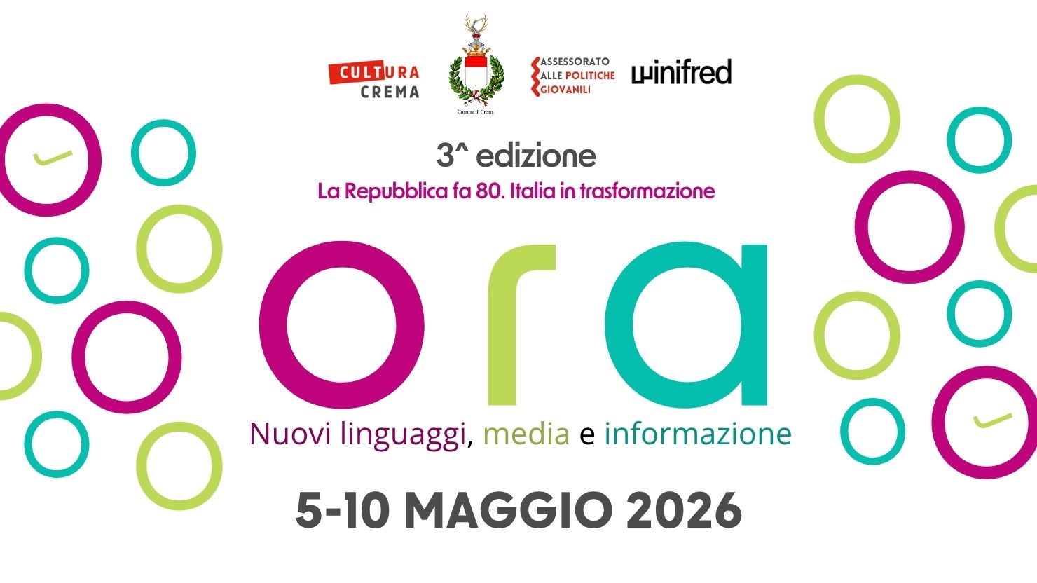 Il titolo scelto per questa edizione di ORA, “La Repubblica fa 80. Italia in trasformazione” non è solo una cornice celebrativa, ma il cuore tematico attorno a cui si sviluppa l’intero progetto culturale proposto dal Comune di Crema con l’Assessorato alla Cultura e alle Politiche giovanili e Winifred, centro d’innovazione culturale del Museo civico di Crema e del cremasco.