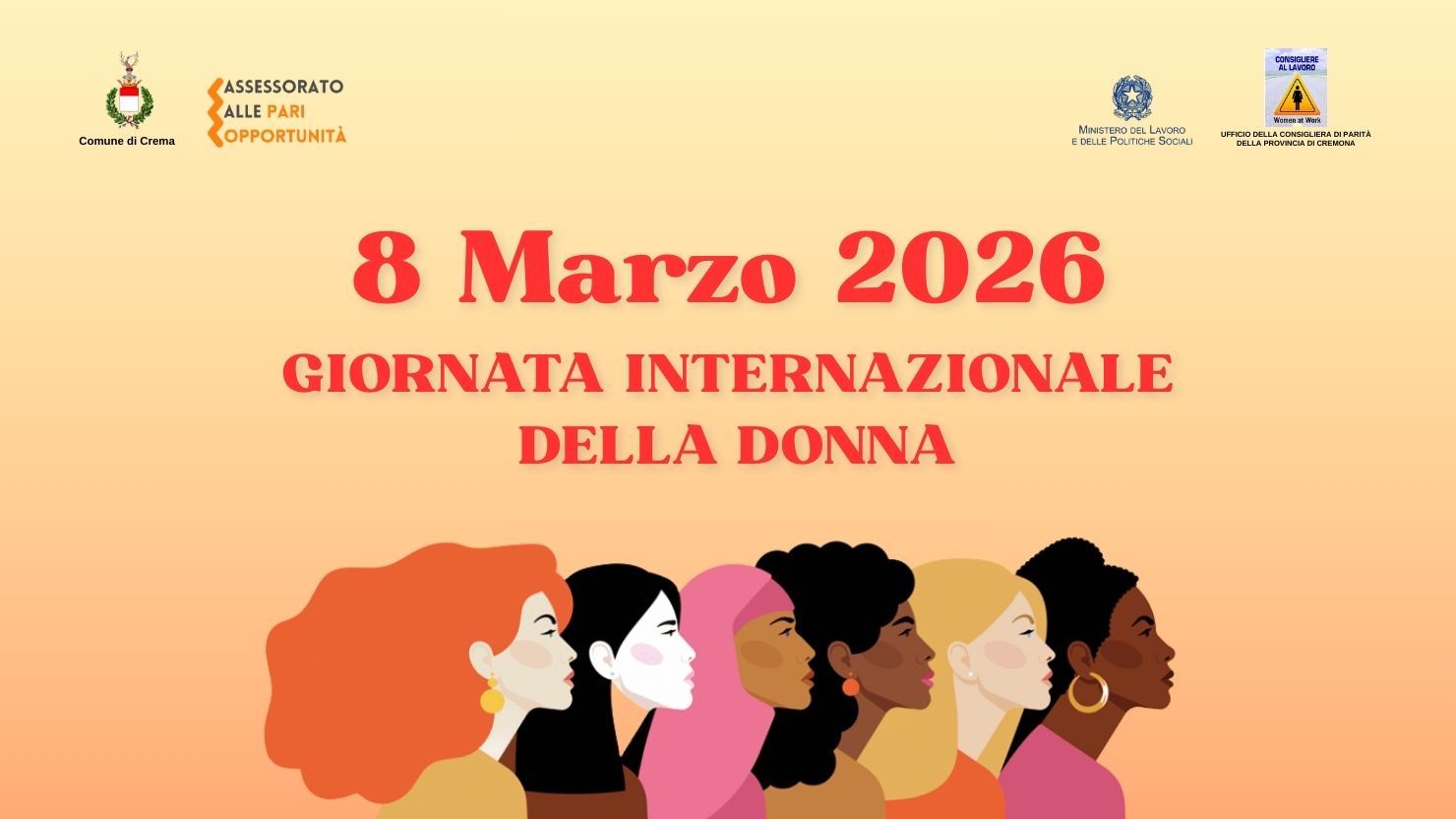 05-03-2026L’8 marzo si celebra la Giornata Internazionale della donna. Per l’occasione, l’Amministrazione e l’Assessorato alle Pari opportunità del Comune di Crema, in collaborazione con diverse realtà del territorio e con il patrocinio della Consigliera di Parità della Provincia di Cremona, presentano un calendario di iniziative che mettono al centro la parità di genere, l’empowerment femminile, il superamento dei ruoli e degli stereotipi; che rendono omaggio alle donne che hanno lasciato e stanno lasciando un segno nella storia; che affrontano le problematiche legate alla salute, alla violenza di genere, ai diritti ancora negati, quando non violati.